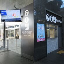 JR京都駅中央口改札の横に造られている、小さな鉄道案内所です。係の方が常駐していて主に列車関係の案内を行っています。外国の方案内所とも書かれていることから、外国語での対応も行っているようです。中央口改札の上の南北自由通路には2つの総合観光案内所が、中央口改札を出た外には、バスの路線を案内するバスチケットセンターがあります。広い京都駅とバス路線が入り組んでいる京都なので、観光客や外国人には心強い味方だと思います。
