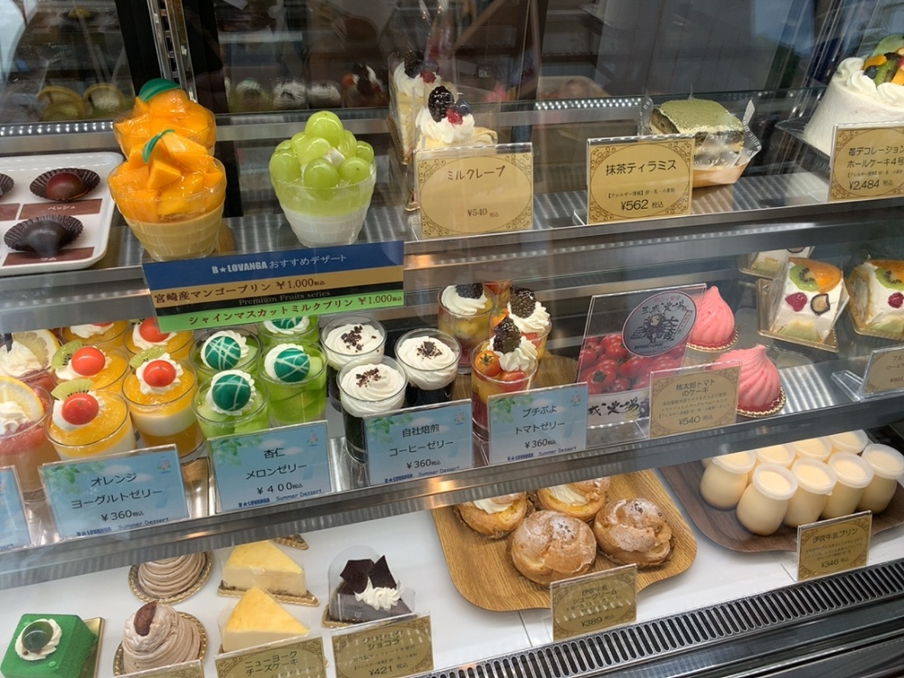 キレイな店内、パンやデザート、ドリンクやかき氷など色々と売ってました。 私はホテルで食べたいと思ったケーキと翌日移動の時に飲みたいと思ったトマトジュースを購入。 トマトジュースは冷凍状態で売ってて、自然解凍でちょうどおいしく頂きました!