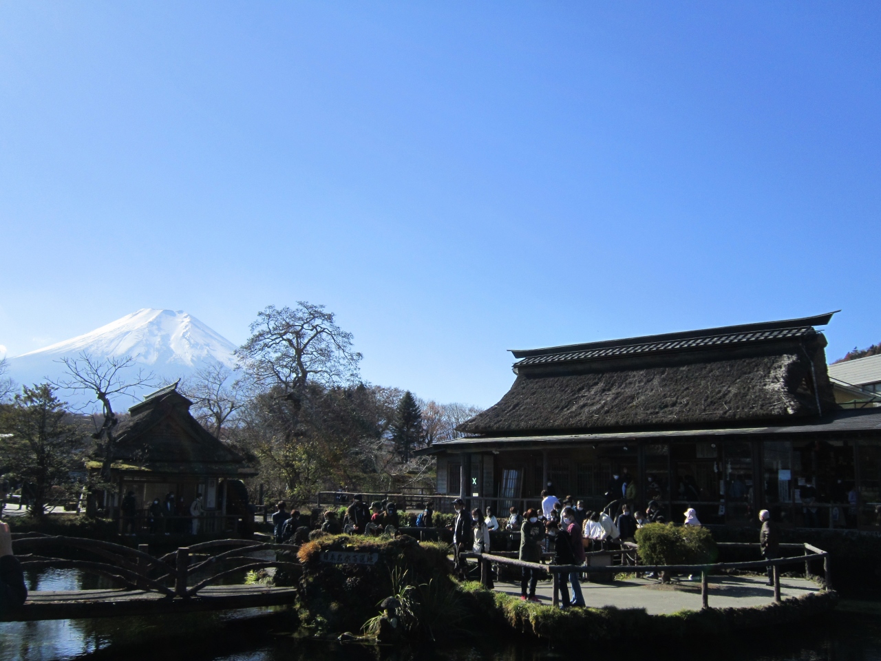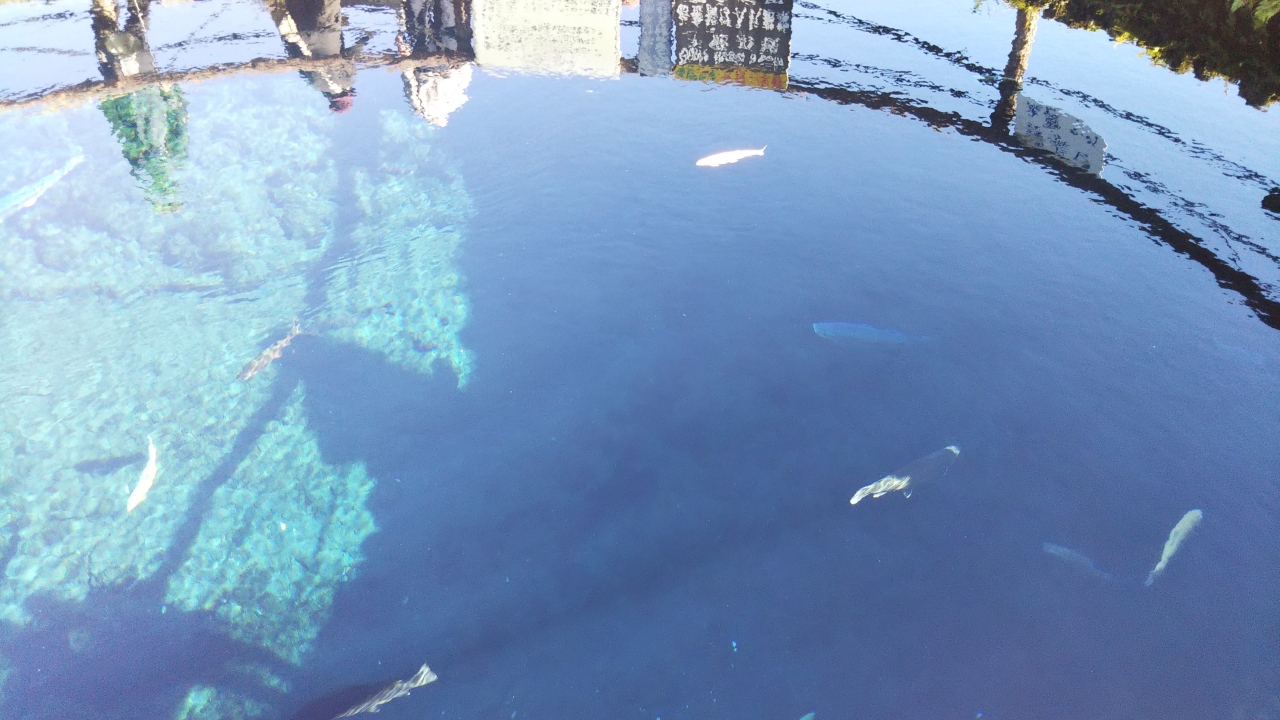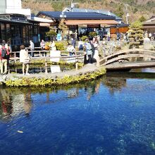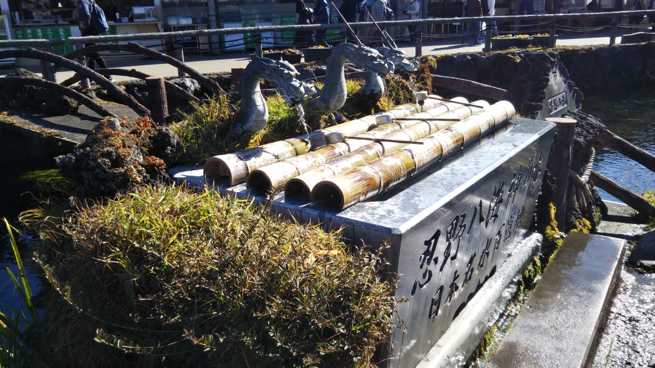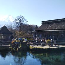 忍野八海は8つの池からなる名所だが、一番観光客が集まる中池は人工的に作られた池で、お土産屋が客寄せのために作ったものである。ただ、水はキレイで、地図もここを中心に忍野八海となっていて、富士山と一緒に写真を撮れる構図なので、もはや八海と一帯となっている。
