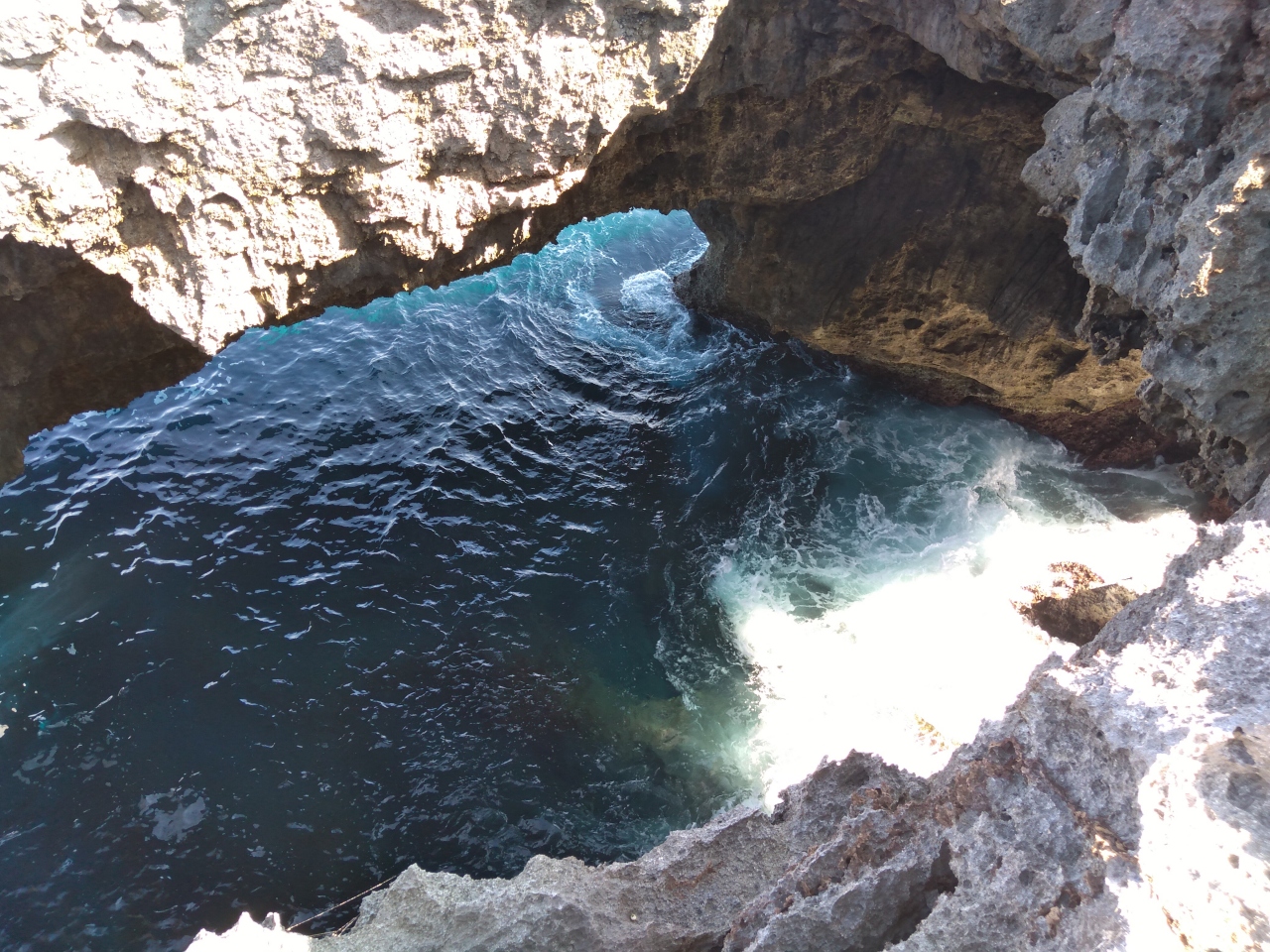 沖永良部島北海岸にある景勝地です。車かバイクでのアクセスとなります。断崖絶壁と浸食されてできた潮吹き洞窟ですが、季節風や台風時には20~70mも吹き上げるそうです。自分が行った時は非常に海が穏やかな時だったので、その荒々しさが信じられないくらいでした。柵とかもないので近くまで行った時には足が竦みました。