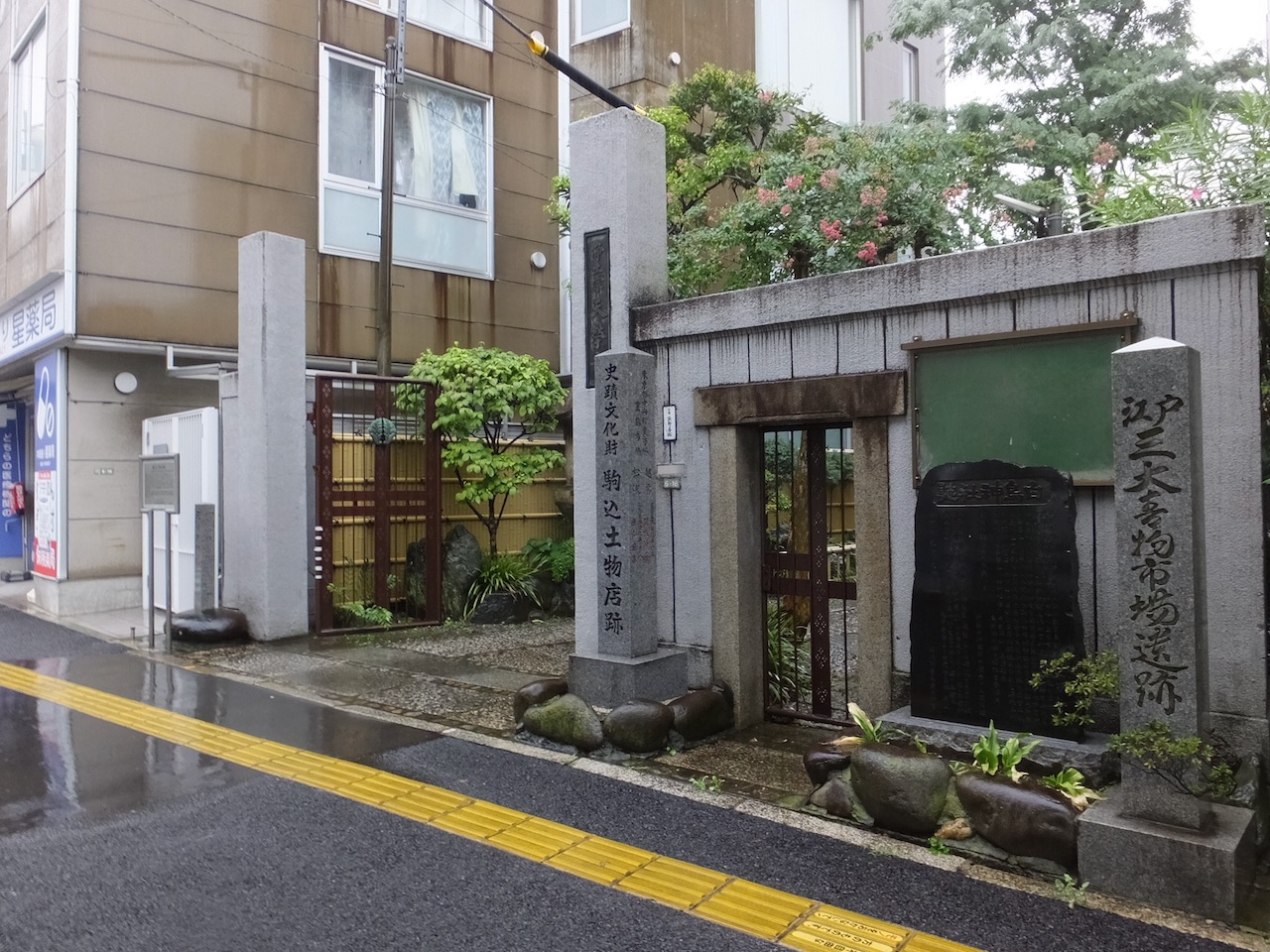 江戸の3大市場のひとつ、駒込成果市場の跡です。土物、とは土のついた野菜のことです。