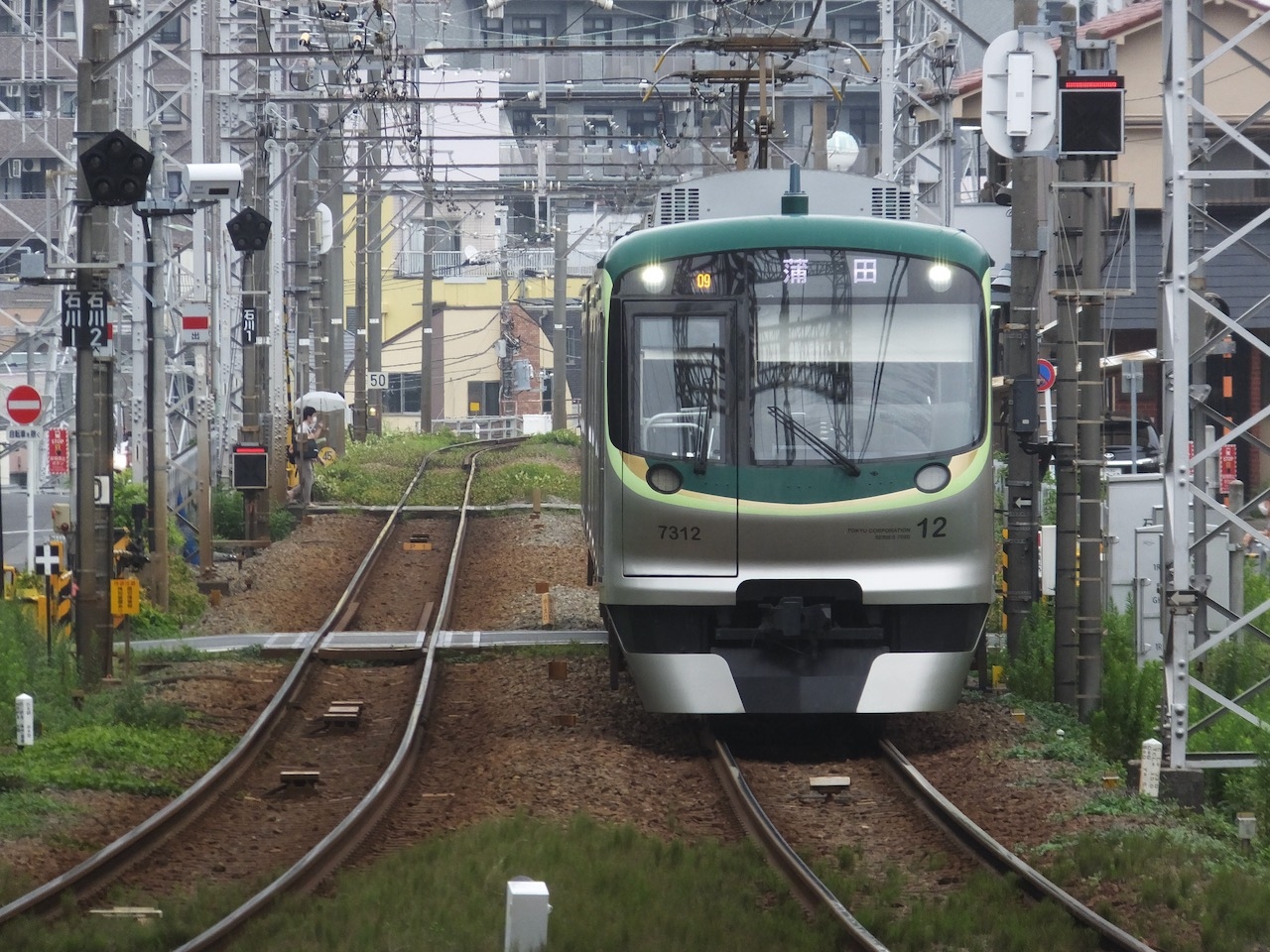 いかにも下町の電車という3両編成。その割に利用者は多く、車内はけっこう混雑します。どちらかというと都心側の五反田よりは終点側の蒲田の方が駅も大きくターミナル感があります。
