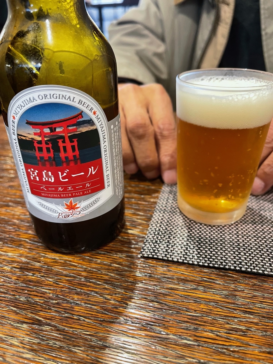 アナゴ飯がなかなか美味しかったです。夫は記念に宮島ビ-ルをいただきました。