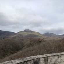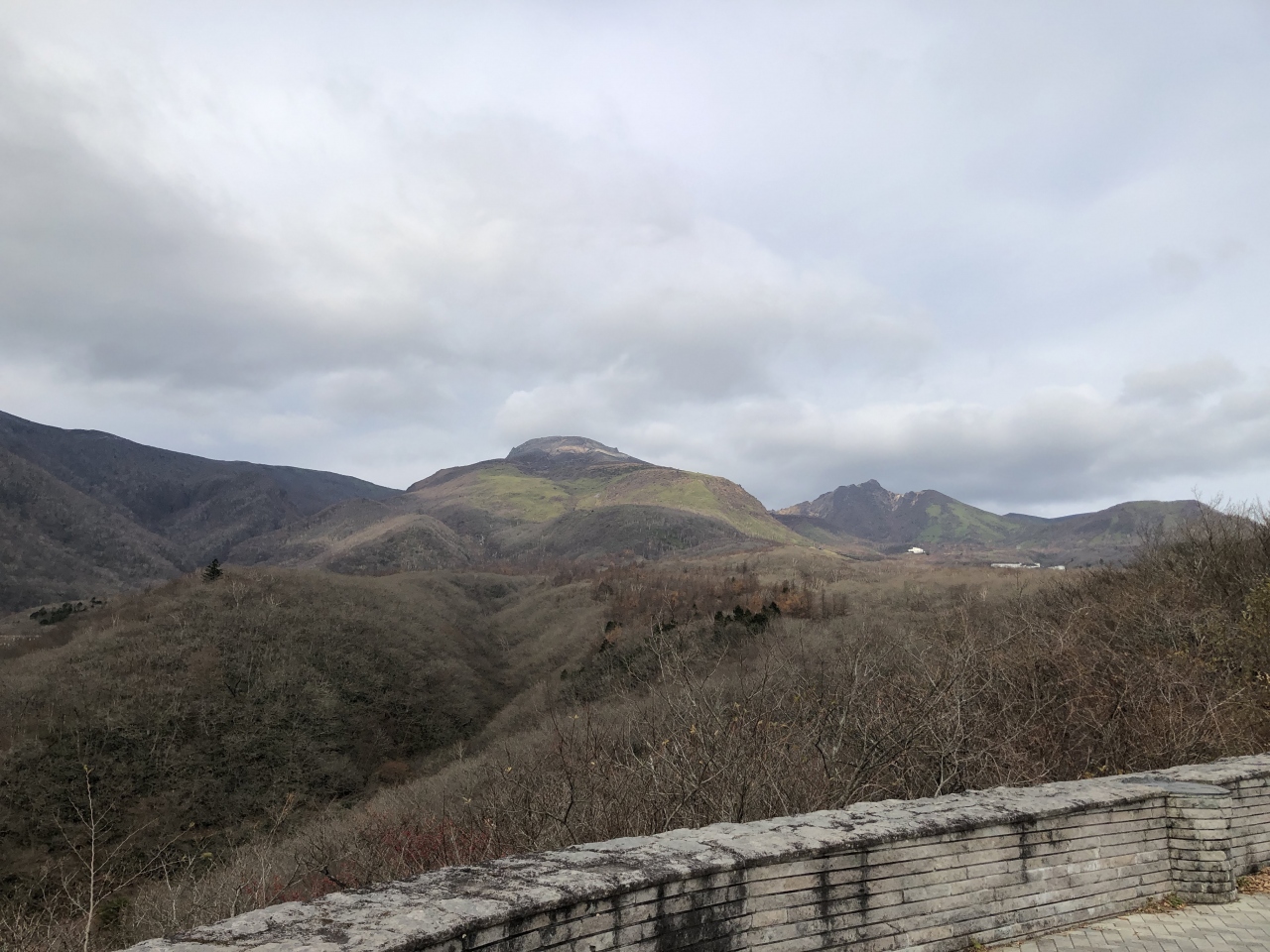 お天気も曇り空の朝10時、11月中旬では紅葉も終わり寂しい雰囲気です。ここからロープーウェイ駅までドライブしましたが、多くの温泉施設が廃墟となりとても残念でした。