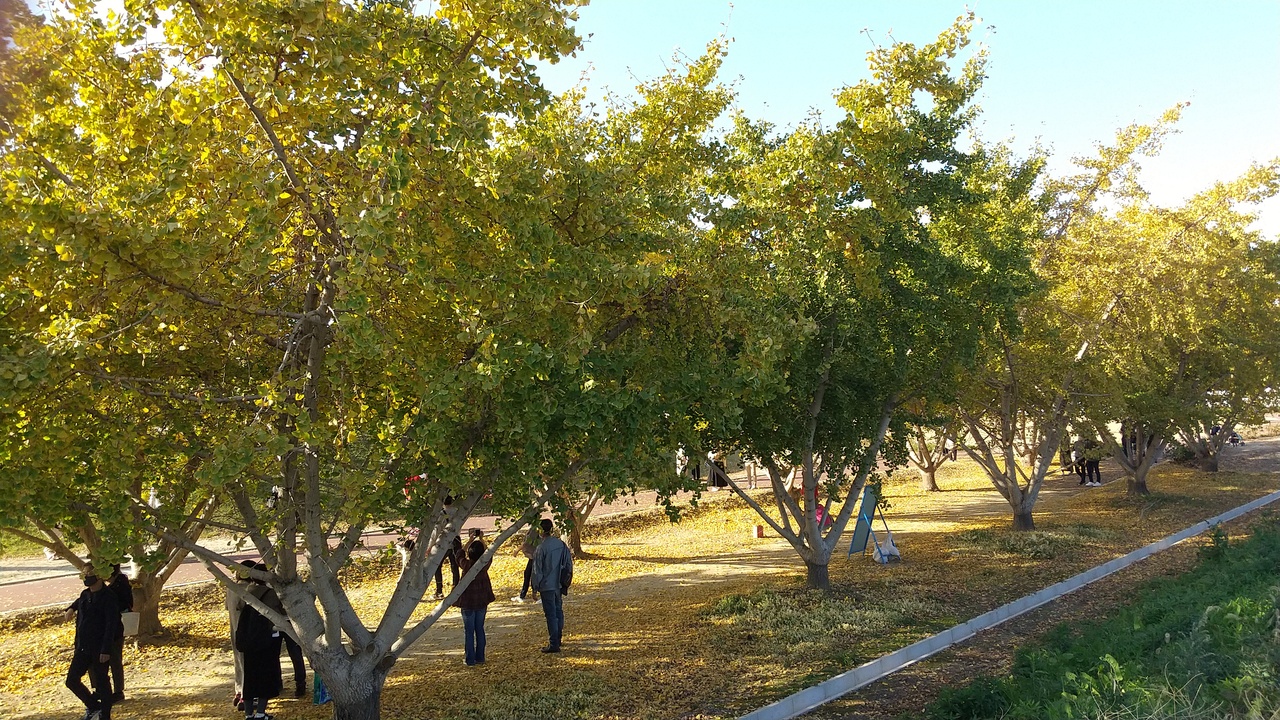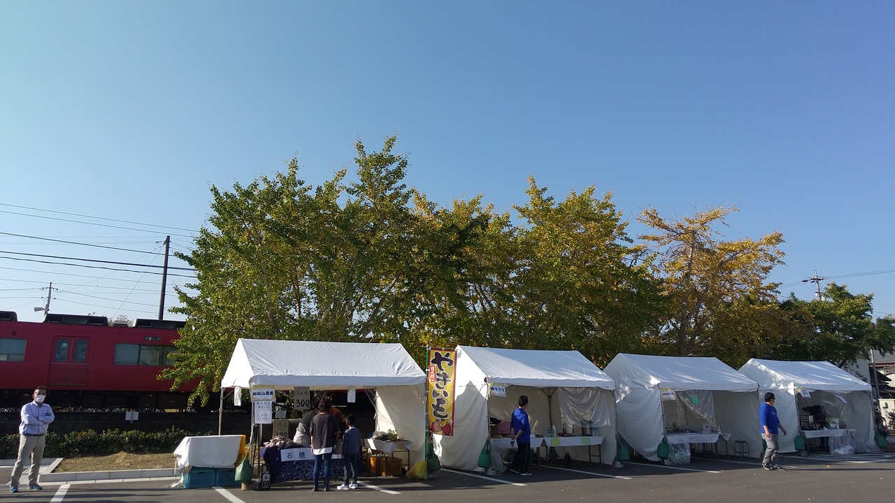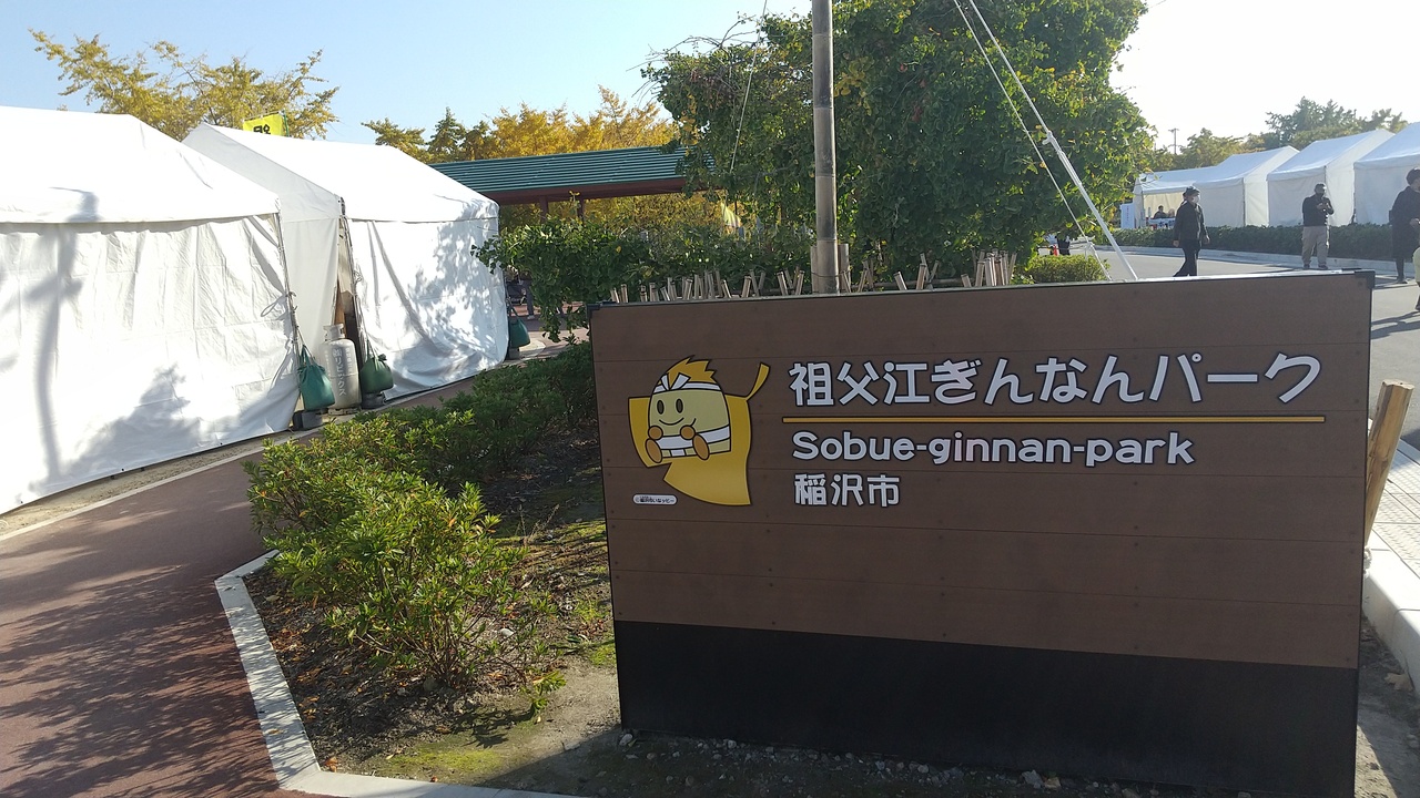 例年の祐専寺を中心にした「イチョウ黄葉まつり」は中止ですが、名鉄尾西線「山崎駅」近くに新たにできた公園で「祖父江ぎんなんマルシェ」が土日、祝日の5日間で開催されています。