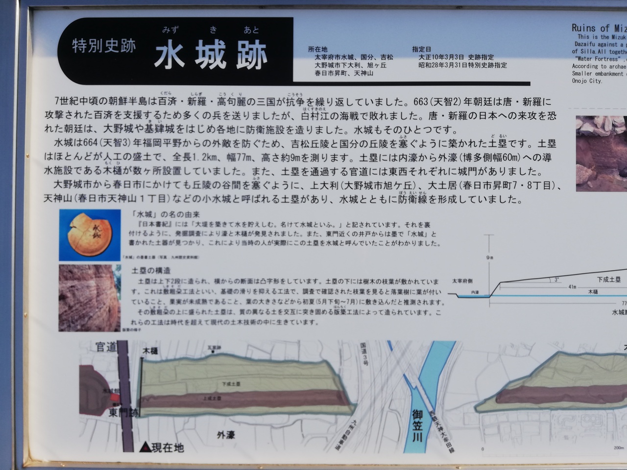 水城跡 ここは太宰府天満宮に入る1キロ手前に防備される いわゆる 城と同様な 機能を果たしていた。 成り立ちとしては 百済、和の国に対し、唐新羅に対抗するための 防衛ラインであった。 600年前後、 外交含め 高度な政策をこの地で行なっていたという技術である。 やはり歴史の発端はこの九州から始まったと言っても過言ではない。 さすがである。 もっとこの地を知りたくなる所以である。