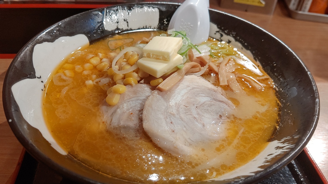 新千歳空港内には北海道ラーメン道場があり、たくさんのラーメン店が軒を連ねています。どのラーメン店にしようか迷いましたが、札幌を訪れたので札幌ラーメンを選びました。札幌ラーメンと言えば味噌ラーメン。1番人気のバターコーンラーメンを注文。美味しかったですが、ちょっと高いと感じました。