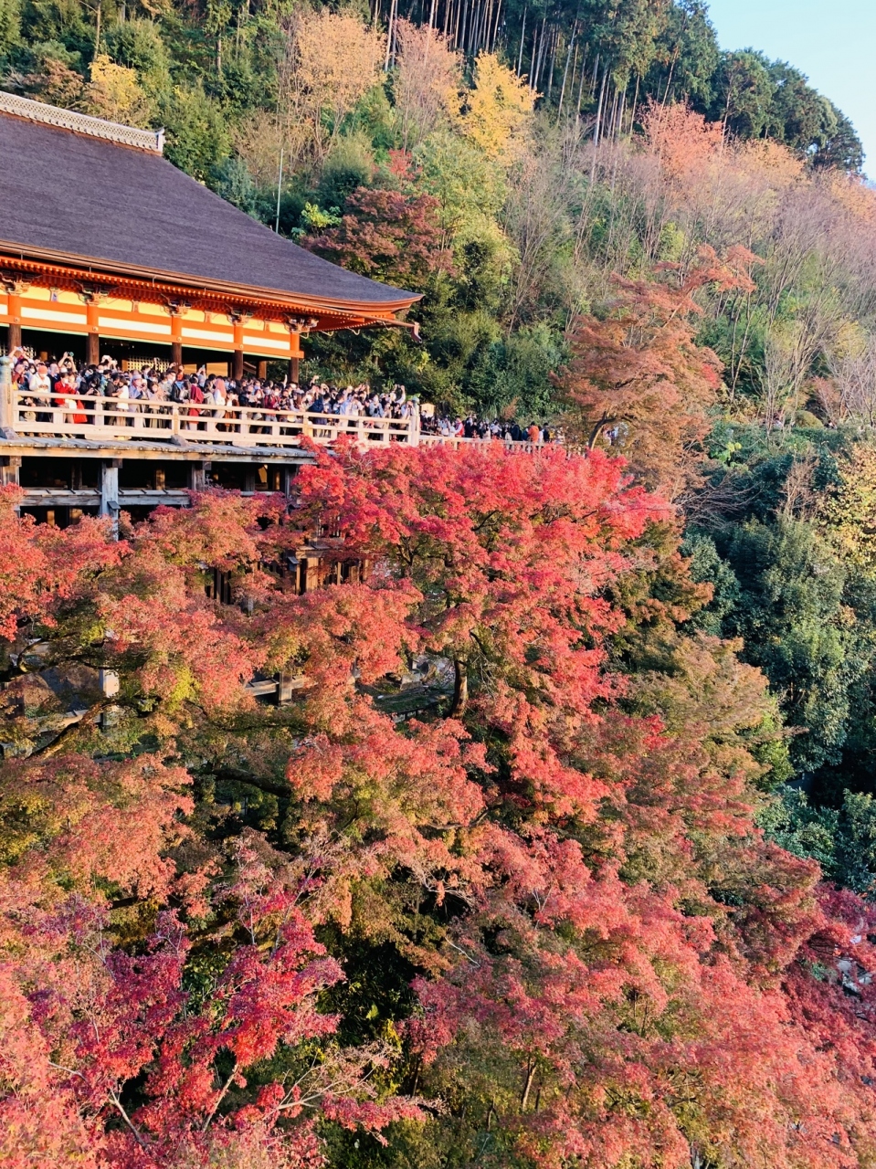 夕方16時頃行きました。紅葉シーズンは夜のライトアップをあるからかチケットを買うのにも大行列。よく清水寺の写真として清水の舞台を撮影できるスポットは大混雑。太陽が落ちる時間が近いから日没を撮影する観光客でその場所を全く動かない人だらけ。普通に立ってるだけでもある押されて倒れそうなぐらいの人混みでした。しかし、紅葉シーズンは拝観料が割高になる寺院もある中で清水寺は拝観料400円。行ってみる価値はあります。