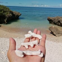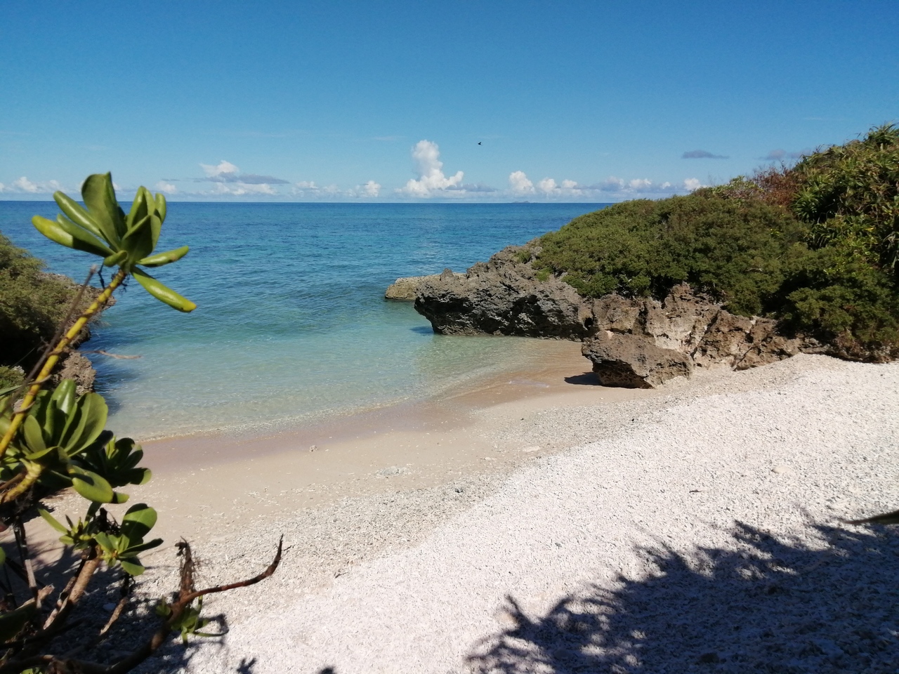 プライベート感満載の小さなビーチです。水際は砂浜でしたが、その上側には枝サンゴの欠片が山盛りに溜まっています。まさにサンゴの浜。なかなかの光景です。おすすめの穴場的なスポットです。