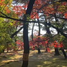 園内は丁度紅葉が色づき綺麗でした。小川と芝や大木と築山それぞれが調和しています。丹頂鶴は園内に放たれているわけではないですが檻の中で見せます。