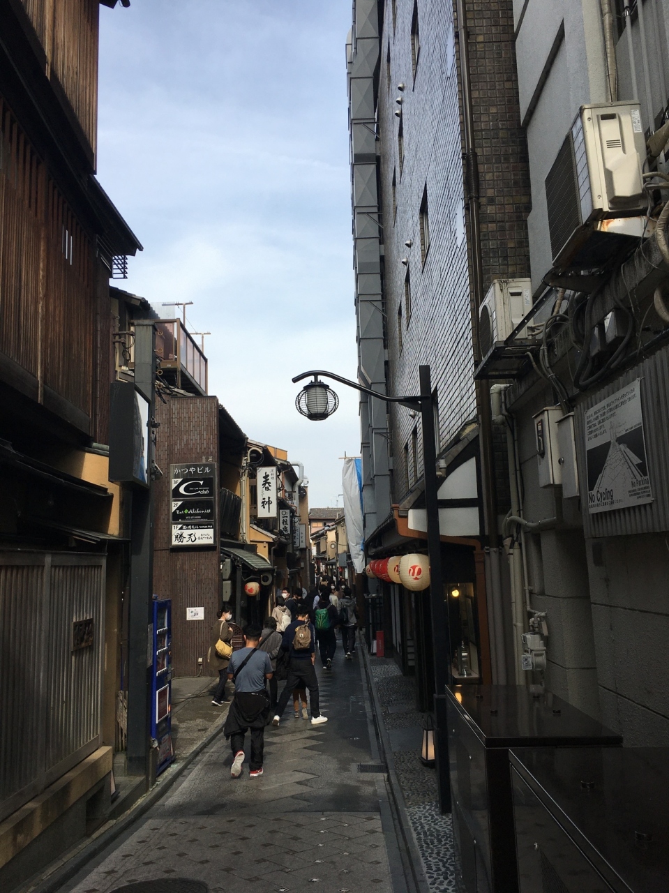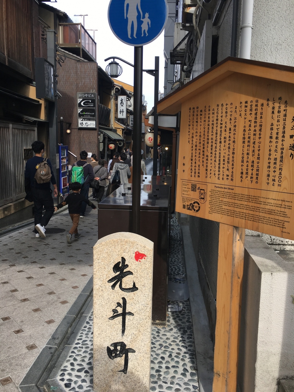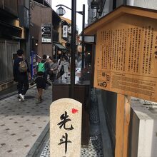 以前は夜に行き、店からのネオンが良い雰囲気を醸し出していましたが、昼は情緒があまりなかったです。四条大橋の手前の自動車も通れないほどの小道ですが店が左右にひしめきあい、人が多かったため、すれ違うのも苦労しました。