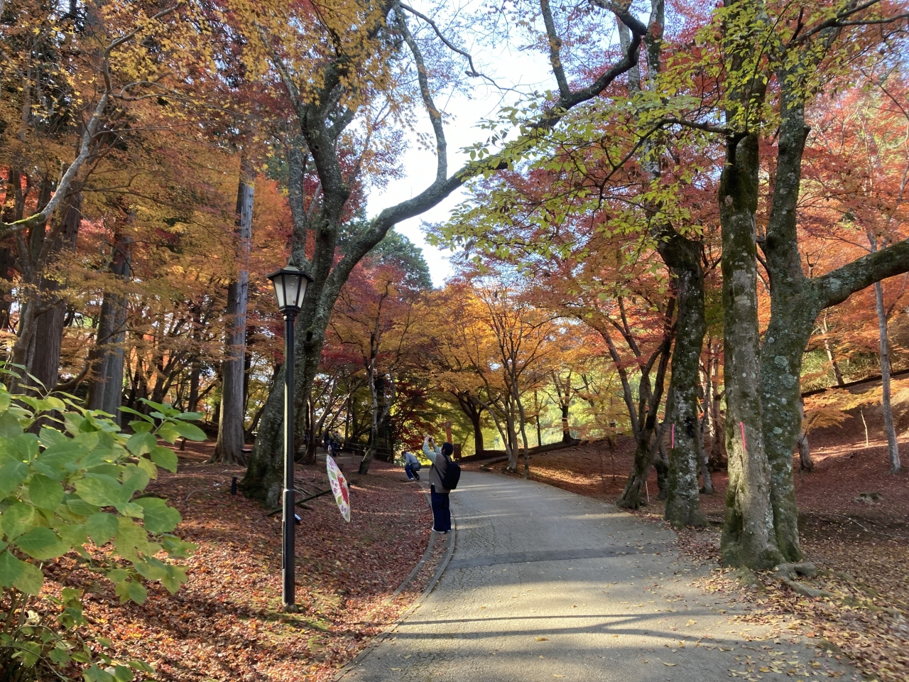 浅野内匠頭の正室阿久利姫出生の地で、討入後は出家して赤穂浪士に援助を惜しまず瑤泉院と名乗り近くの菩提寺に遺髪が安置されています。公園全体が一つの山で、昔は出城がおかれていた場所です。県内屈指の桜と紅葉の名所で、この時期は紅葉で真っ赤に山を染めていてこれだけ紅葉が密集している場所は珍しく綺麗で、頂上の展望台からは三次市内を一望でき景観も素晴らしく多くの人で賑わっていました。公園内には藤井芳太郎扇領徳碑やキリシタン燈籠、阿久利姫像、浅野神社等があり見所も満載で良かったです。