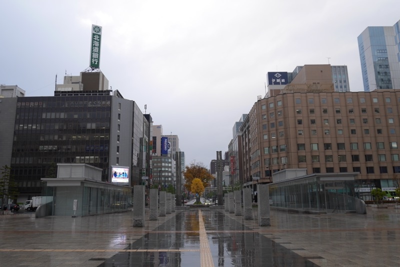札幌駅南口の広場です。広場を取り囲む百貨店やビル群のなかでESTAがちょっと年季入ってるな〜と思いきや、近年改装かなにかされるようで。こうやって代替わりしていくのですね。駅構内への入り口上にある時計が紺色なのも、星のかがやく夜空を思わせてすてきだなと思います。訪れた時はとくにイベントなどなかったので、とにかく広〜いのがよくわかるだけの場所というかんじではありました。