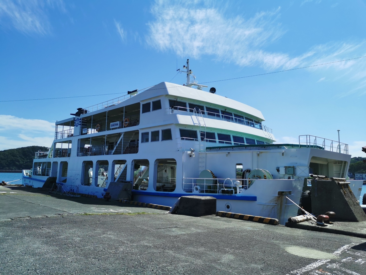 ドライブ旅行鹿児島県の長島から三和商船の蔵之元フェリーに乗り熊本県天草下島へ。天草下島の左側を時計回りに北上して鬼池港に到着。ここから島鉄フェリーに乗って長崎県の口之津港を目指します。鬼池港までは運がよければイルカがいるらしいですが当日は残念。予約無しでもすんなり乗船。船内は綺麗でくつろげます。