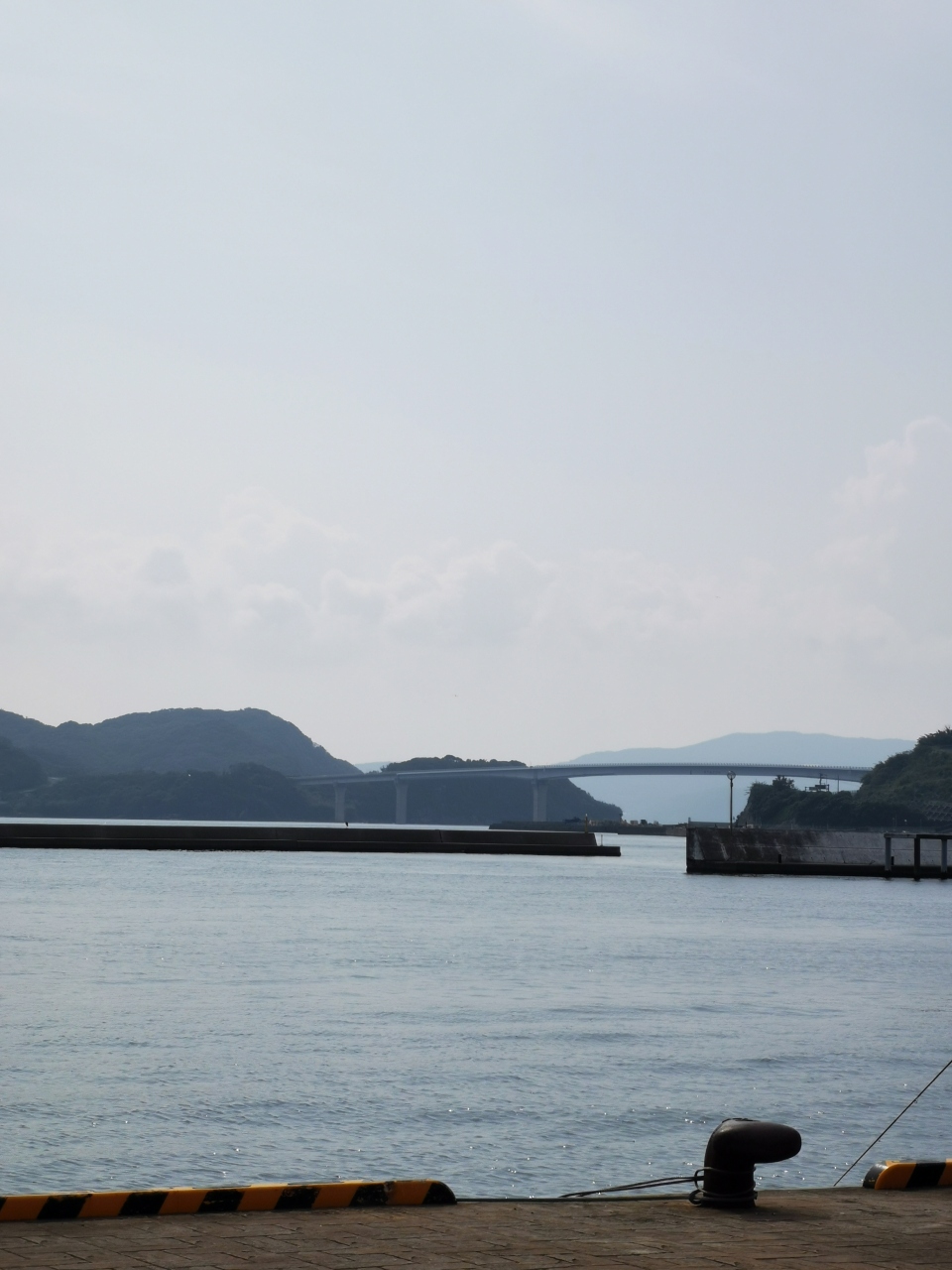 長崎一人旅ドライブ。長崎市内に宿泊。伊王島灯台を目指して伊王島に渡りました。本土から島に渡る橋が伊王島大橋です。車で走行する分には普通の橋です。車を停めるところもありません。島に渡った後、伊王島港ターミナルから遠望で見る事になりました。地元の方にはありがたい橋なのだと思います。