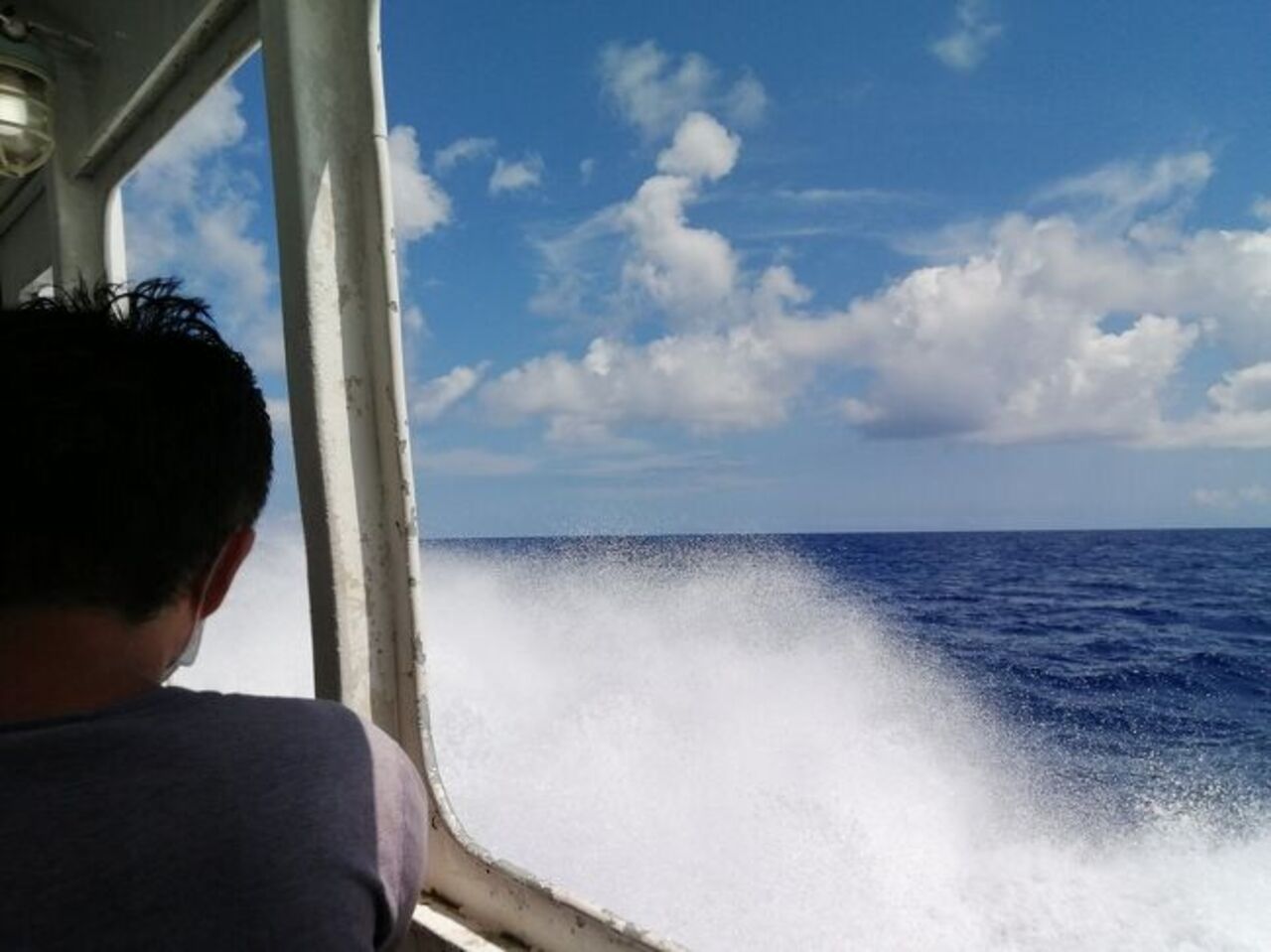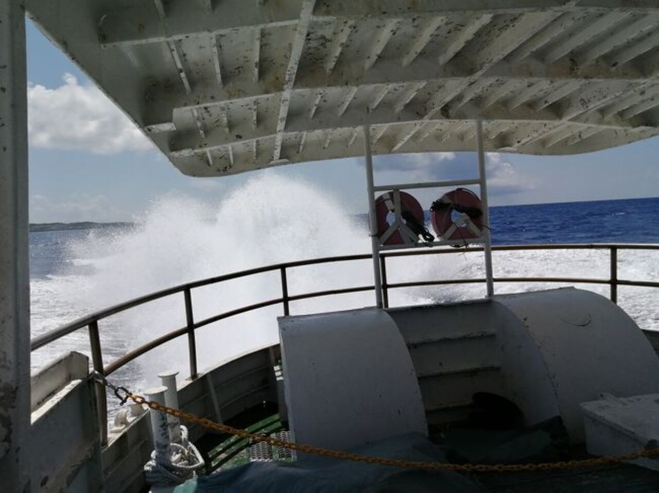 波照間島から石垣島に戻る際の船がすごかった…。乗ったのは小型の高速船。後部のデッキ部分にも座席があり、最後尾の端(海側)の席をゲット!