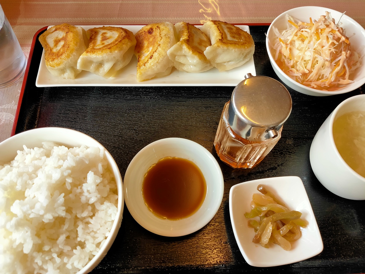 餃子は5個ありますが、かなり大きいです。幼稚園児の拳くらいの大きさがあります。