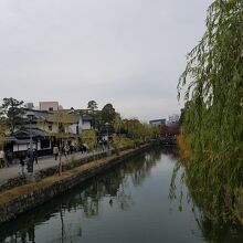 中心地に倉敷川が流れ、その側に趣ある建物と柳が並んでおり、とても風情があります。
