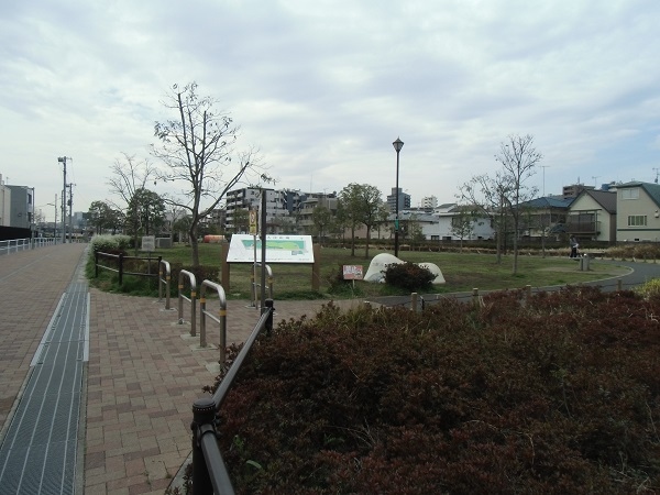 説明板によると、東京都下水道局鮫洲ポンプ所雨水貯留池の上部を整備し完成した広場です。