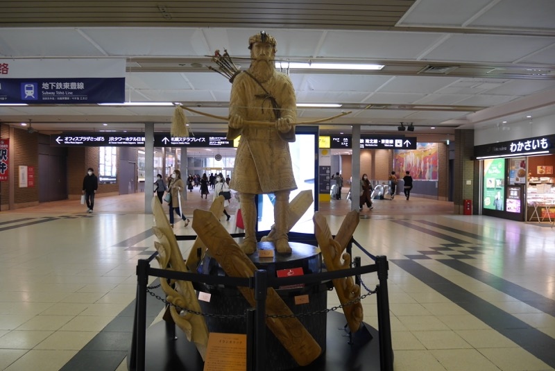 一年半ちょいぶりくらいに再訪。前回札幌を訪れたときの復習をして再訪、というわけではまったくなく、ふつうに訪れたのだけれど、なぜか「駅の通路にアイヌの像があったよなぁ…」ということは記憶に残っていた。雪まつりがどうだったとか以上に、自分の心のなかに残っていた気がする。あのときは札幌駅構内はかなり工事中だったのだけれど、工事が終わったいまもこうしてすっくと立っている像に再会できて、うれしく思いました。