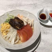 本当は、汁そば・点心セットを頂くつもりでしたが、冷やし中華は9月末までと店員さんのご案内がありオーダーしてみました。