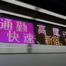 10月下旬の、午後9時台に、東京駅から利用しました。東京駅の中央本線ホームは、地上3階に独立して設置されていました。ホーム上には、多くのお客さんが居ました。乗車したのは、通勤快速の高尾行。使用されている車両は、特に快速と変わりませんが、停車駅を減らし、その分速達性を向上させているようでした。