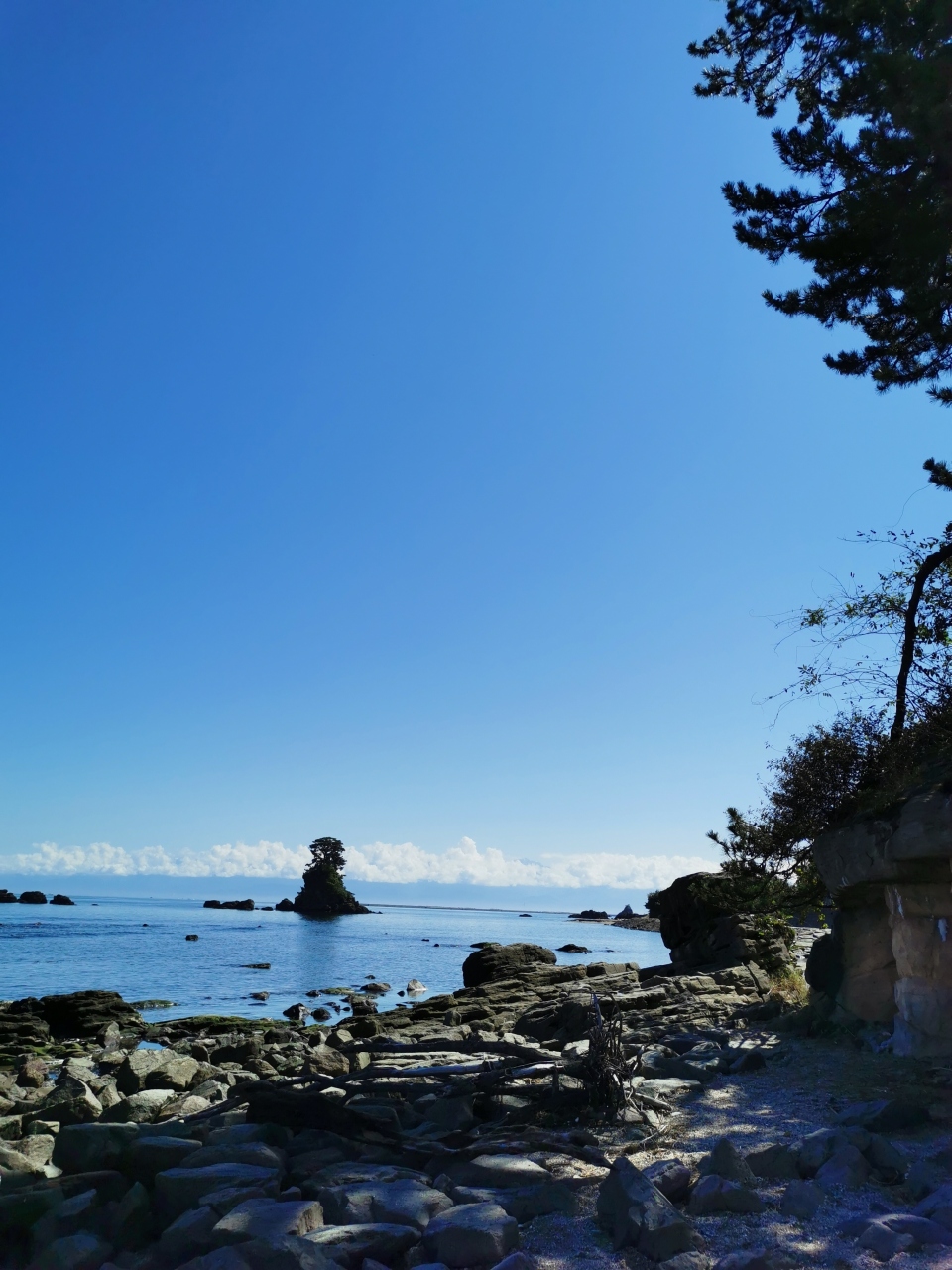 一人ドライブ旅で石川県から富山県へ移動中。氷見から海沿いに走ると綺麗な富山湾が一望できる「道の駅 雨晴」に休憩立ち寄りしました。素晴らしい天気でしたので雨晴海岸が綺麗。施設は道路沿い前後に駐車場があるので入りやすい。雨晴海岸を一望できる展望台もあり良い道の駅です。道路を渡るとすぐに義経社と義経岩があります。富山湾を背景に綺麗な景色です。