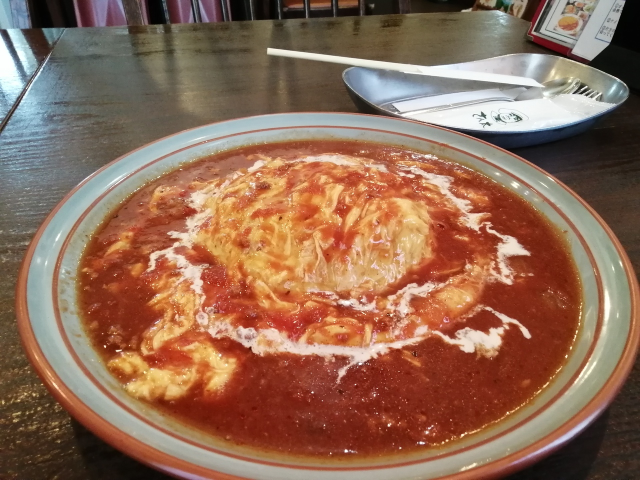 さて、お味は…うまーい!です。チキンライス、とろーり卵、デミトマトソースが絶妙のハーモニー。人気店なのもうなずけます。しかーし、ご飯の量が少なーい。そのくせムダにソースがかけられている。カレーは飲み物と言う方がいますが、このオムライスはまさにそう。食べた気がしません。