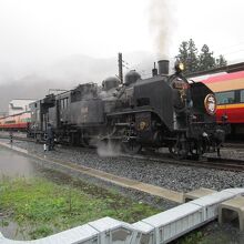 訪れた時は、SL大樹は転車した後で、駅構内の線路上に待機していました。