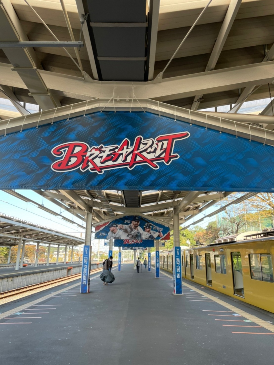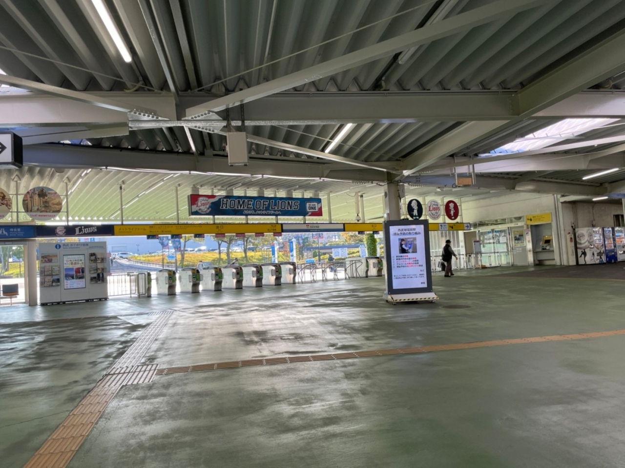 ライオンズ選手の名前や背番号がペイントされていて、ライオンズファンには嬉しい駅です。