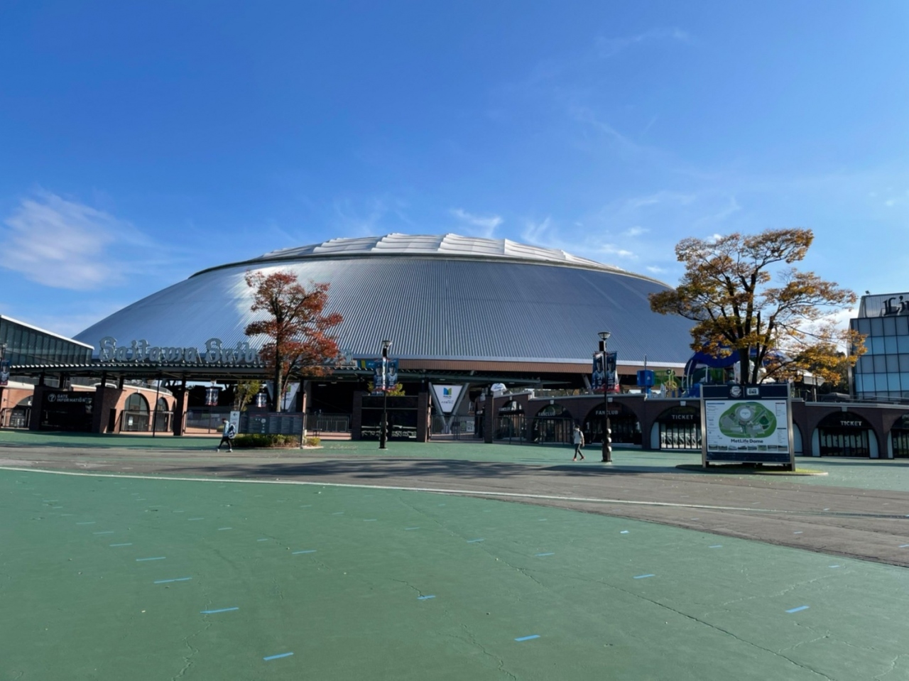 駅を出れば目の前に巨大なドームスタジアムが、広がります。