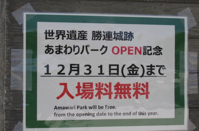 勝連城跡は年内無料(^^) 来年からは600円に