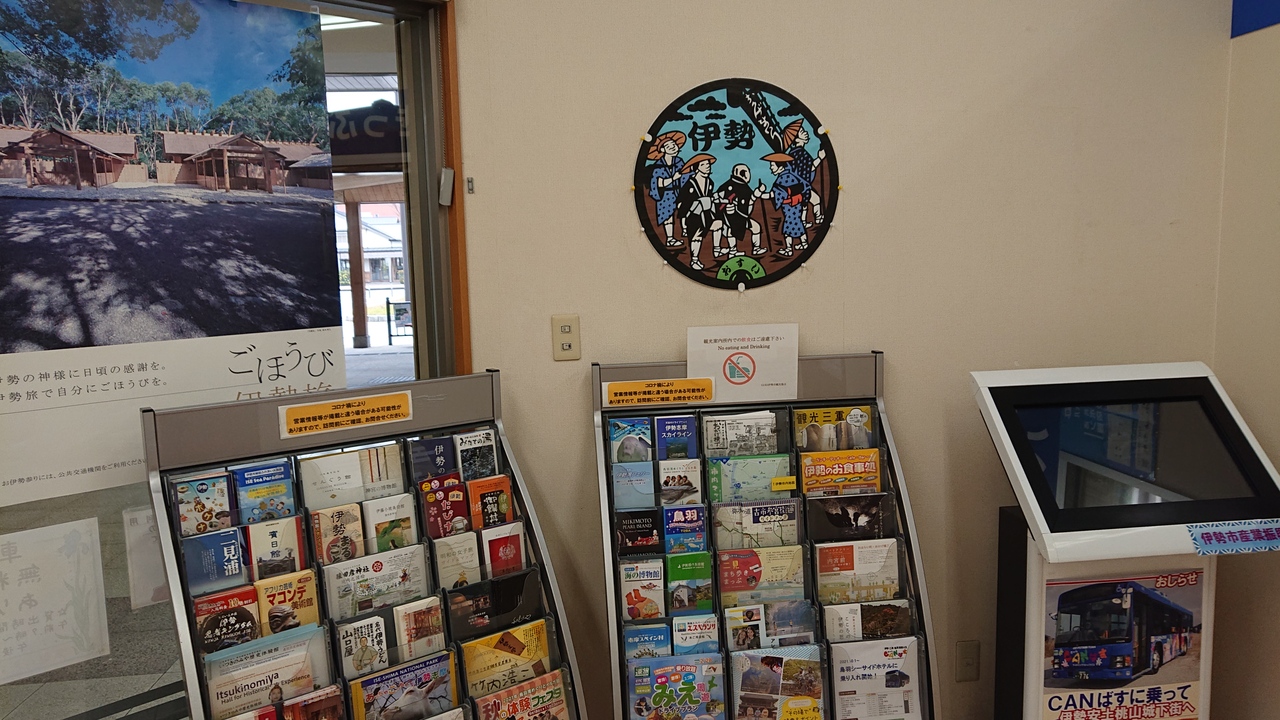 近鉄とJRの共通駅となっている、伊勢市駅のJR側の改札口近くに立地する観光案内所です。係員の方も常駐されています。パレットラックには、伊勢観光に関する資料が多数取り揃えられていました。その中から、丼ぶりに関するパンフレットをいただきました。ありがとうございました。