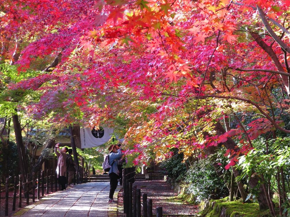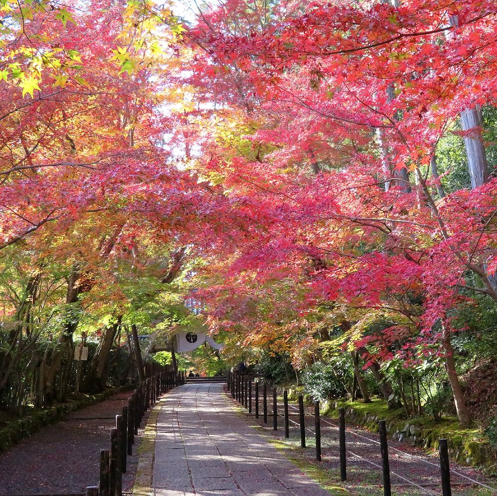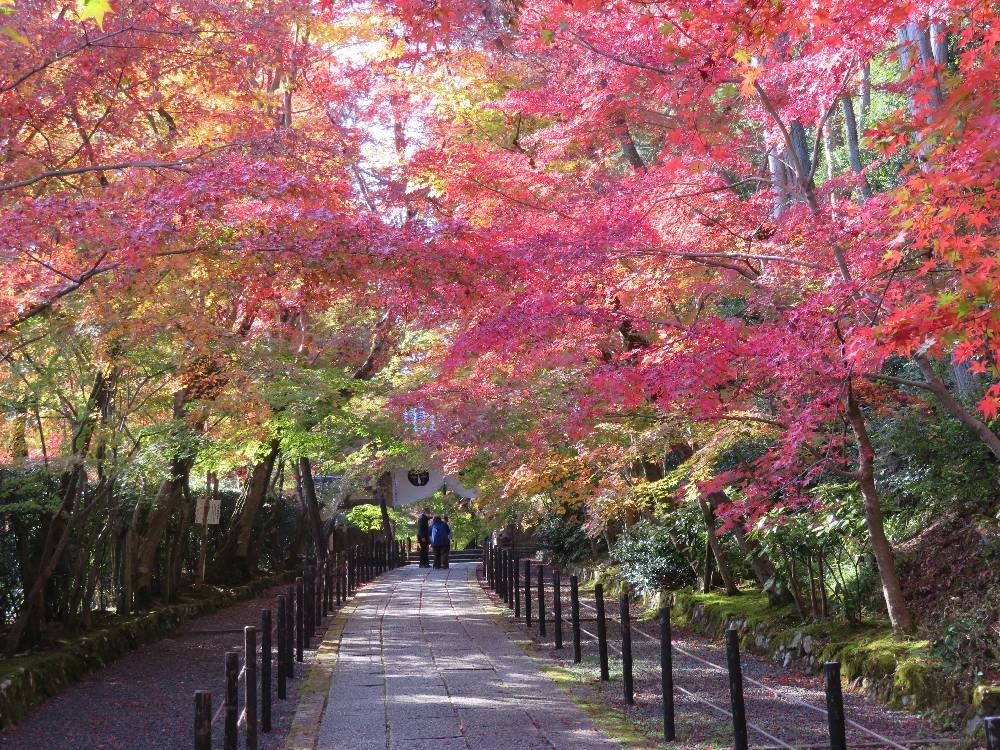去年行きそびれたので、今年はぜひ行きたいと思い、紅葉情報では見ごろになっていたので11月19日の昼過ぎに訪れました。電車とバスを乗り継いでいかなければならなかったので、訪れにくいところですが、わざわざ行く価値があると思いました。浄土宗の大本山ということで、想像以上に規模の大きなお寺でした。見学コースは総門から一方通行で、御影堂、釈迦堂大書院と建物内を周り、最後の最後にお目当てのもみじ参道が待ち受けています。参道のもみじのトンネルは素晴らしく、出来れば人の少ない時間帯に歩きたいところでした。