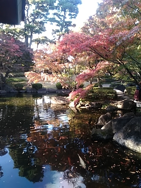 東京23区内ではさまざまな紅葉スポットがあると思いますが、この公園は派手さはないものの、いい場所だなと感動させられる庭園の美しさがあります。池には錦鯉が優雅に泳ぎ、まっすぐな銀杏並木は長々と見とれてしまう感じです。