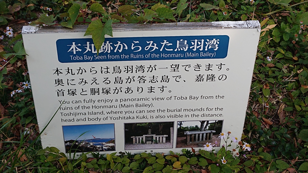 11月中旬の平日の午後に、鳥羽城の本丸跡に訪問しました。当日は、やや寒い位の気象状況でしたが、小高い位置にある本丸跡へと到達するまでの過程で、体がかなり暖まりました。歩きやすい靴での訪問が吉だと感じました。なお、本丸跡付近は、案内看板が充実していました。