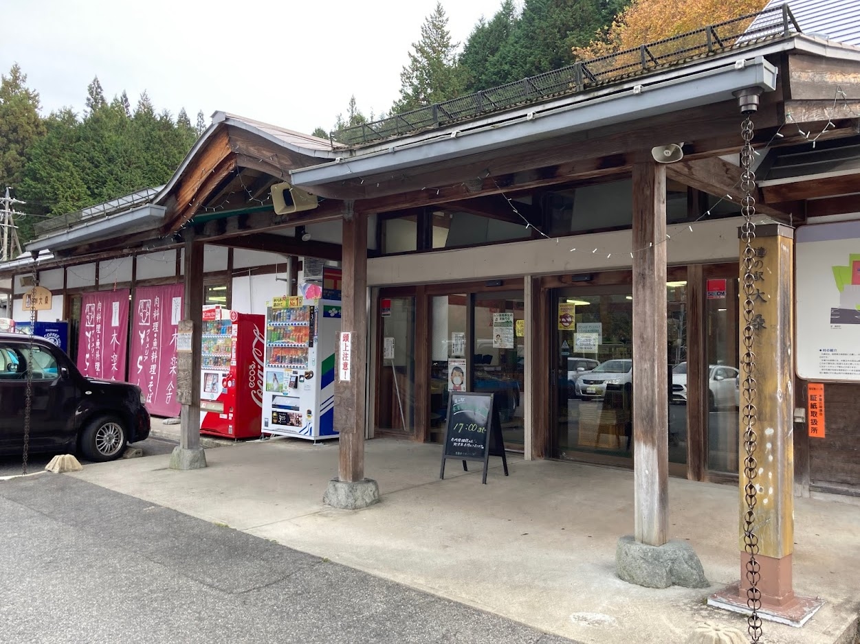 国道19号路線にある道の駅で別名「木楽舎」です。木曽桧、天然木で造られたという館内も、木曾檜の木工品や、お土産物、果物、お野菜が並んでいて、賑わっていました。