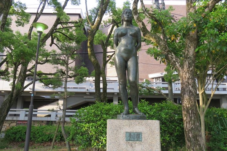 石山公園にあるブロンズの裸婦像。写真を撮ろうとしたら朝ラジオ体操に集まっていた地元の方が有名な作家の作品だと教えてくれたのですが、忘れてしまい、不思議なことに後から調べて見つけられませんでした。教えてくれた方に対し、もうおひとりの方が「詳しいんだねえ」と感心していたことだけが印象に残りました。