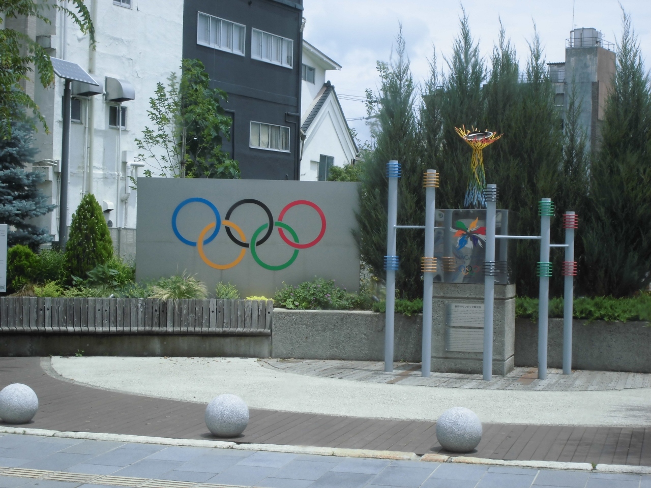 長野市はオリンピックが開催された都市です。それを記念した公園がここでした。オリンピックのマークがあり、聖火のトーチのレプリカもありました。ただ、その後の長野市はオリンピックの後遺症に苦しむことになります。オリンピックはもう日本で開催してほしくないです。