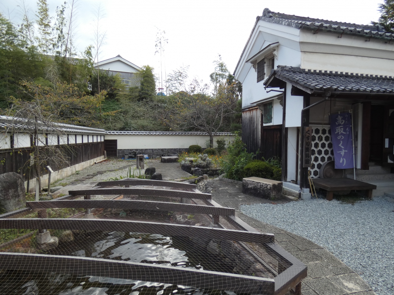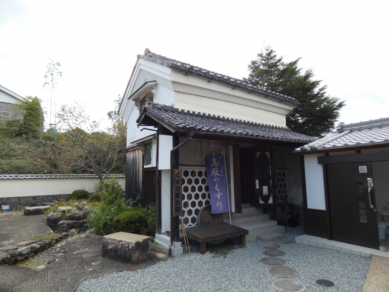 山城の城下町でもあり、薬の町としても知られる・高取の土佐街道に面して上土佐に建つ観光案内所夢創館の裏庭の蔵がくすり資料館です。薬を作る道具や高取で造られた薬を展示しています。入館は無料の小さな館です。