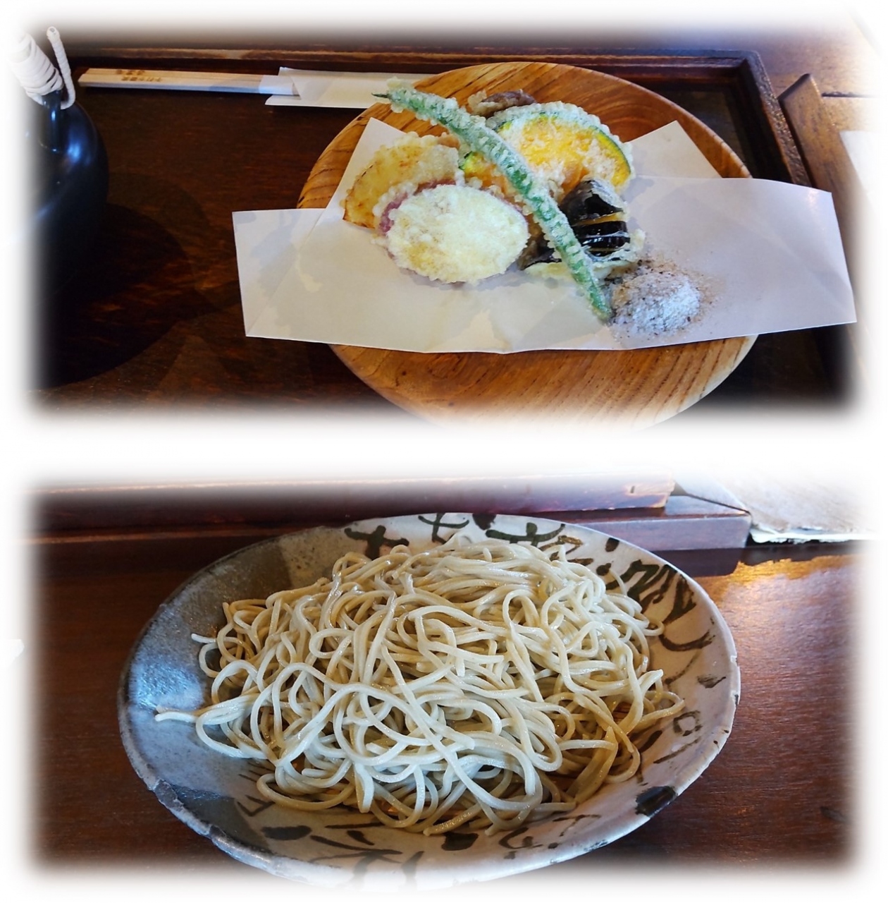 粗挽き細うちせいろ(880円)と天ぷら盛り合わせを昼食とした。