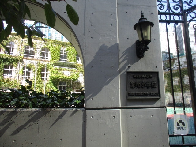 JR有楽町駅東口より数寄屋橋交差点からすぐみゆき通りを右に入った先に泰明小学校はあります。明治11年に設立し建物は関東大震災後にカーブ壁面、アーチ窓を使った鉄筋コンクリート造りの重厚な校舎に建て替えられました。個性的な装飾が施され玄関部分の柱や南フランス貴族館で使われた門扉は見ごたえありました。北村透谷、島崎藤村は初期卒業生だそうです。