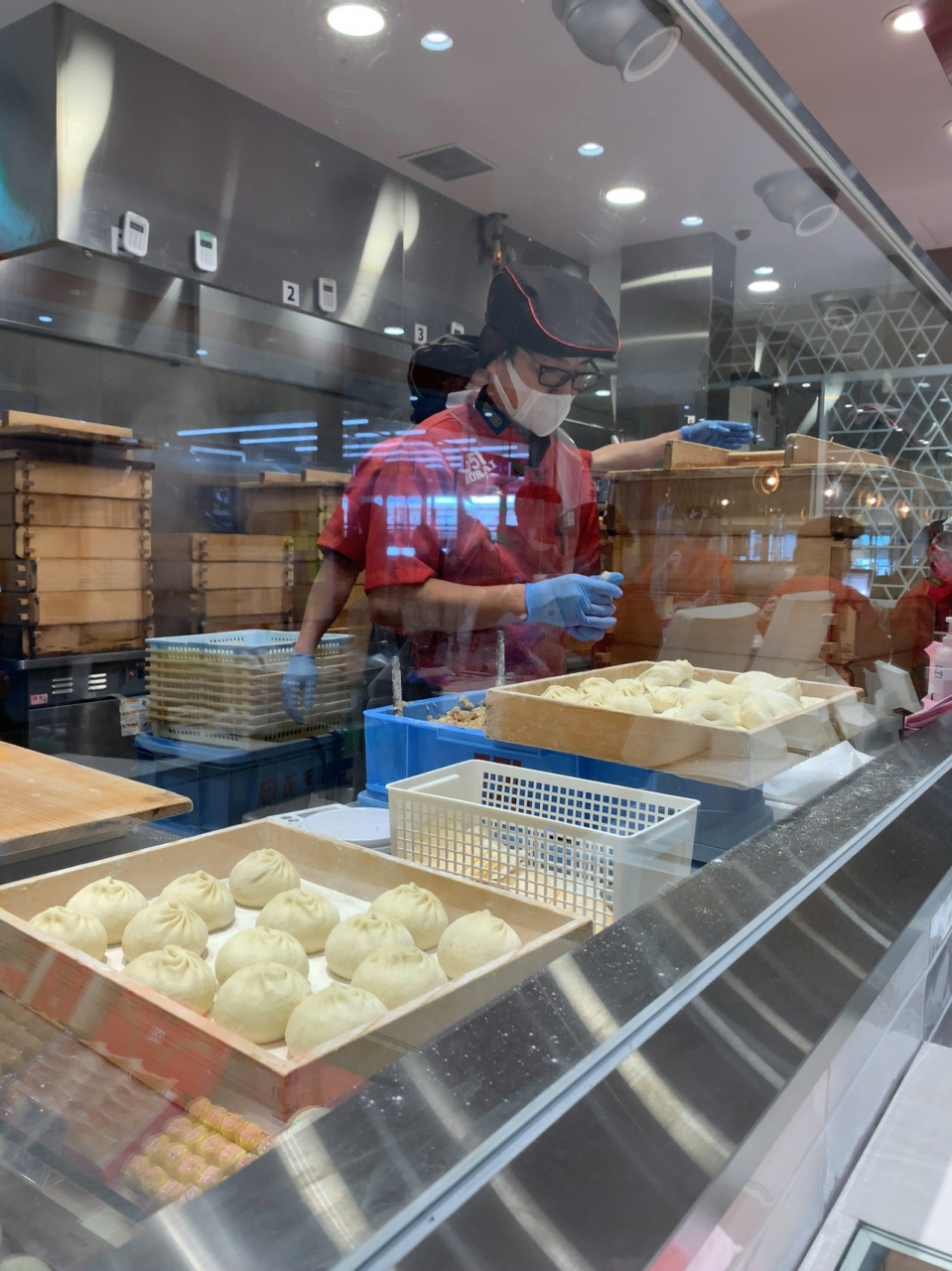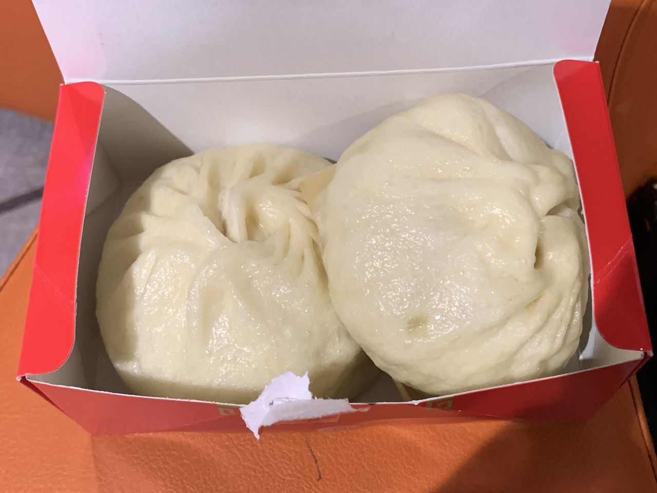 551 蓬莱は伊丹空港に2店舗あり、南ターミナル2階のANA出発口前にレストランと暖かいテイクアウト商品が購入できる店、2階中央ブロックの手荷物受取所前にお土産用のチルド製品が購入できる店と分かれています。豚まんは1個売りはなく、2個 4個 6個 10個入りでした。熱々の豚まんはジューシーで美味しかったです。