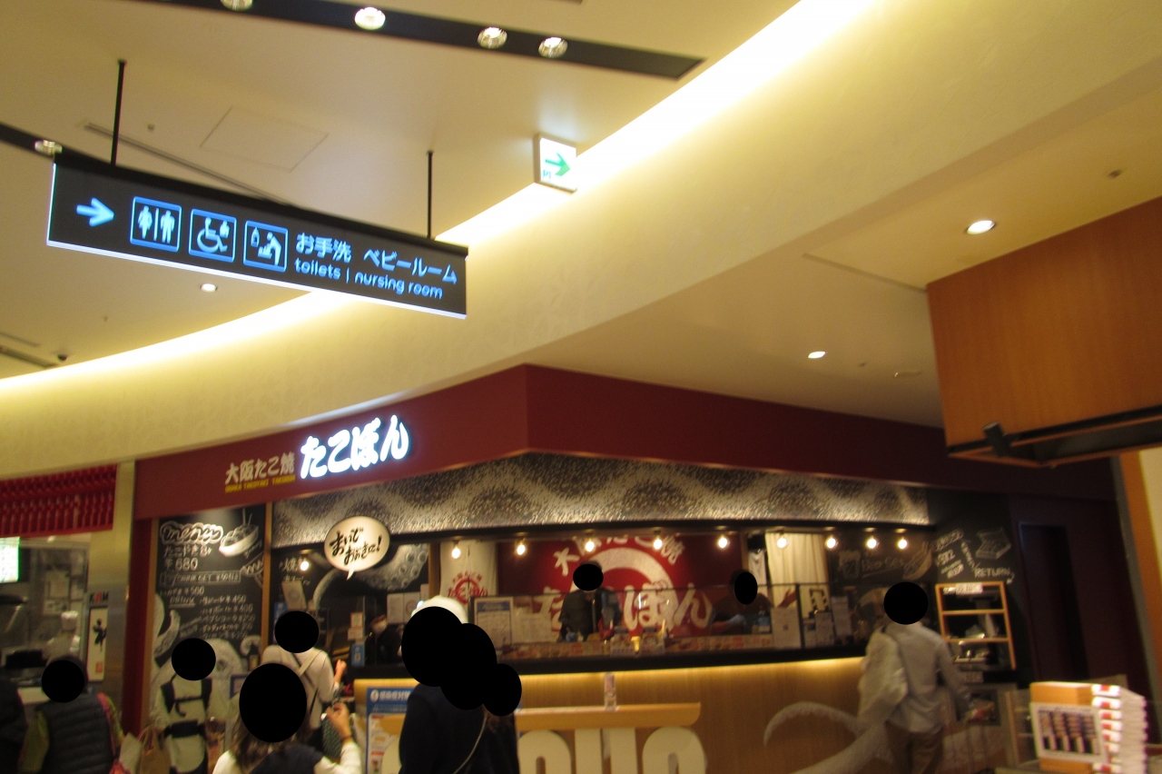 飛行機を待つ間に温かいたこ焼きとイカ焼き
