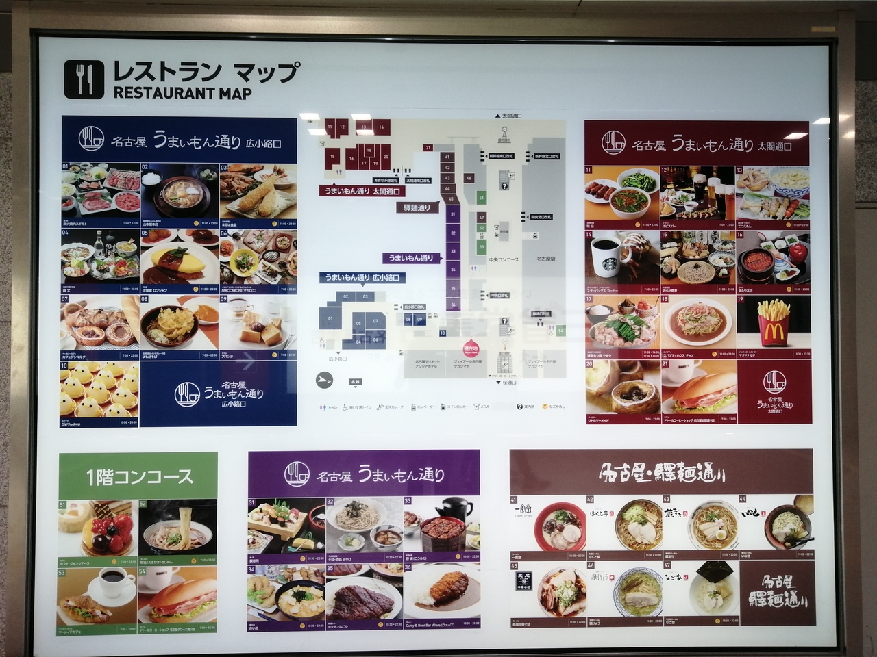 JR名古屋駅構内にある名古屋グルメが集う飲食街です。うまいもん通りは中央コンコース沿い、桜通口側、太閤通口側の3つのエリアに別れています(写真参照)。中央コンコース沿いを覗いてみると、味噌カツやひつまぶしの店がありましたがどちらも豪華でお値段はやや高め。その中にあって、鶏の唐揚げとハイボールがセットになった「ハイカラセット(480円)」なんかもあり、ささっとちょい飲みするにはいいメニューだと思います。