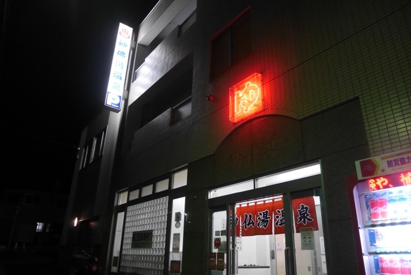 神仏湯、なんてなにやらお線香のにおいがただよってきそうな名前ですが、中身はふつうの銭湯です。温泉なのがいいですね。温泉を飲むことのできる蛇口もあります。そんなに独特な味わいの温泉ではないため、物足りなさはありますが、逆にいうと飲みやすい温泉です。夜9時ごろに訪れましたが、とてもにぎわっていました。