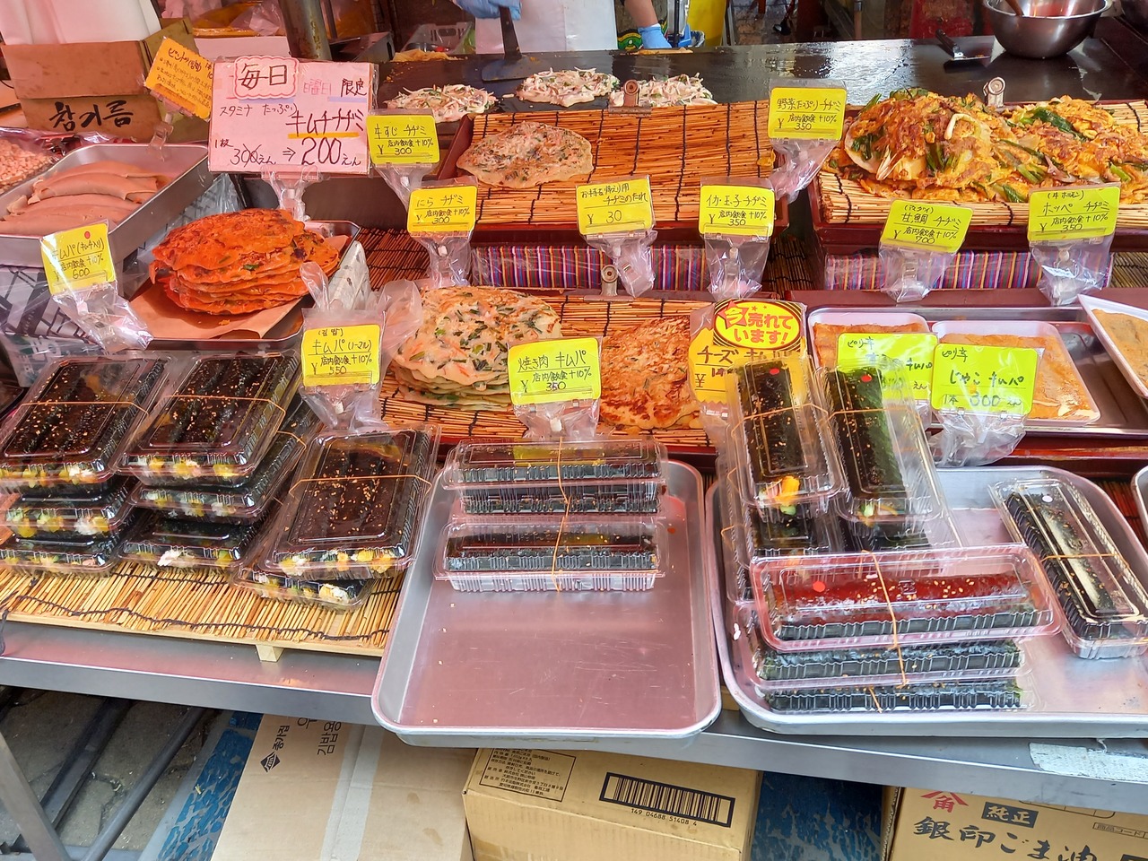 御幸通り中央商店街にあります。チヂミやキンパの種類が色々あり、キンパではチーズ入りが人気の様でした。持ち帰りの他、10%高くなりますが店内でもいただけます。今回は焼肉キンパ350円を持ち帰りでいただきました。持ち帰りの際にいえば、小さく切ってもくれる様でした。