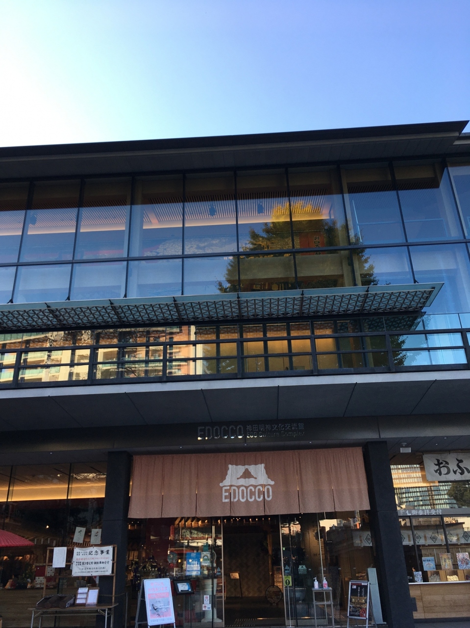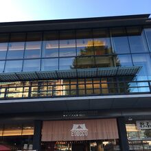 神田明神境内にあります。インフォメーションからお土産間、甘味処、レストランと充実しており地下には石の博物館がありました。神田明神プリンや神社エールといった変わり名の食べ物も販売していました。とても綺麗です。