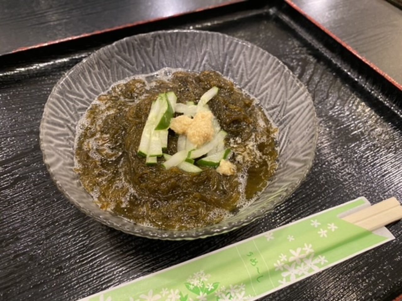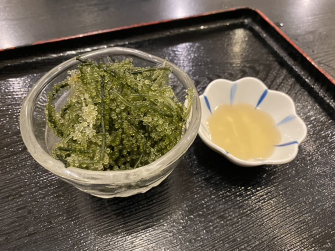 もずく酢、海ぶどう、もずく天を生ビールと泡盛で!