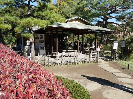 吹上茶屋は六義園の正門から左周りに一周する丁度中間点程の場所に有ります。近くには吹上浜・吹上の松・白鵬橋が有る。前回訪れた際は抹茶セットを戴きましたが今回は周辺の散策と近くのトイレを借りただけでした。